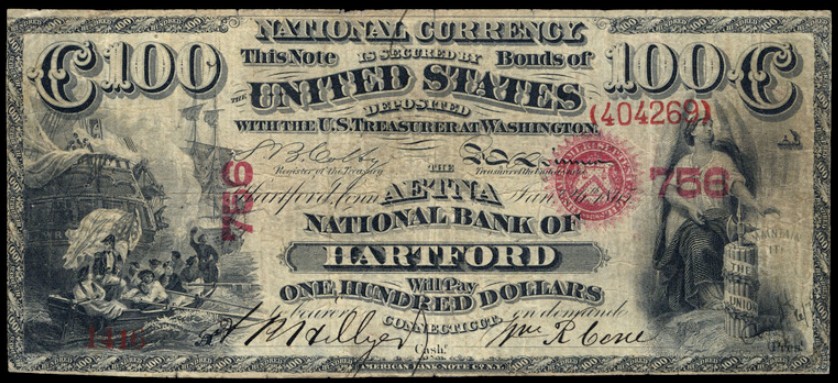 Original series $100 Hartford, CT Ch756 A.R. Hillyer, Cashier and William R. Cone, President