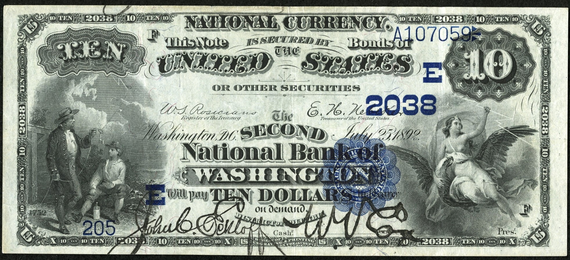 1882 Date Back $10 Washington, DC Ch2038 John C. Eckloff, Cashier and W.V. Cox, President