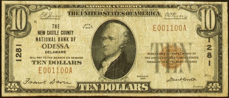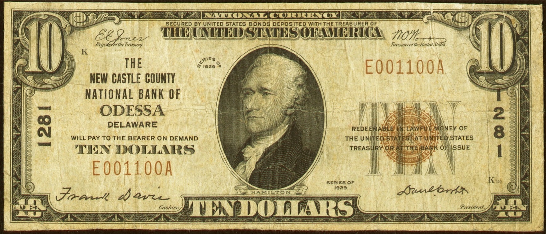 1929 Type 1 $10 Odessa, DE Ch1281 Frank Davis, Cashier and Daniel Corbit, President