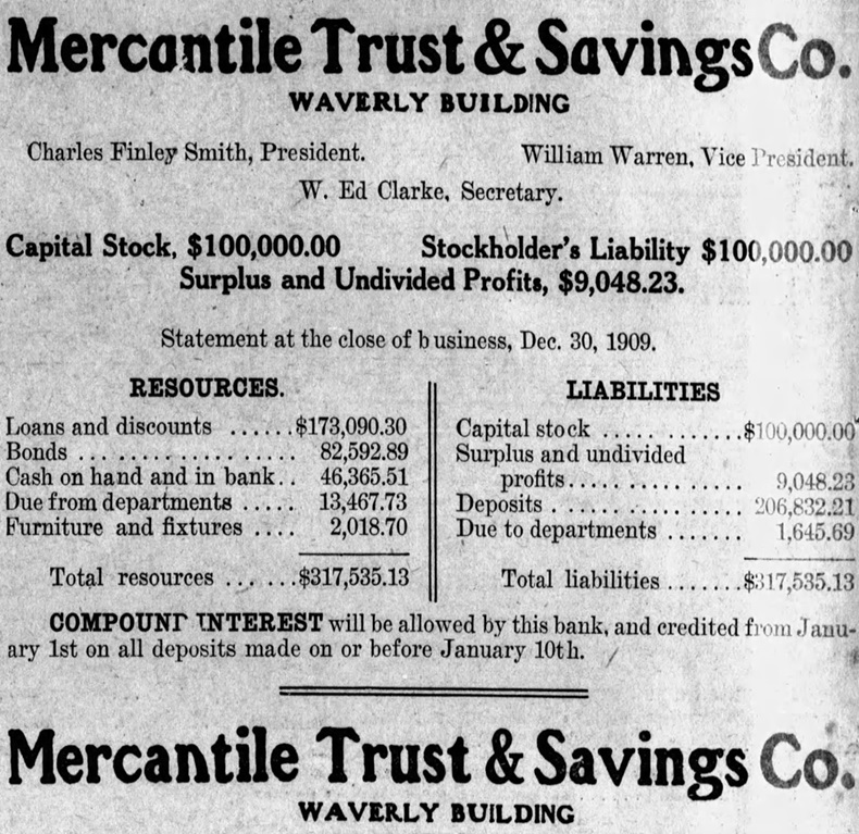 A January 1910 advertisement for the Mercantile Trust & Savings Company Evansville, IN Ch8492