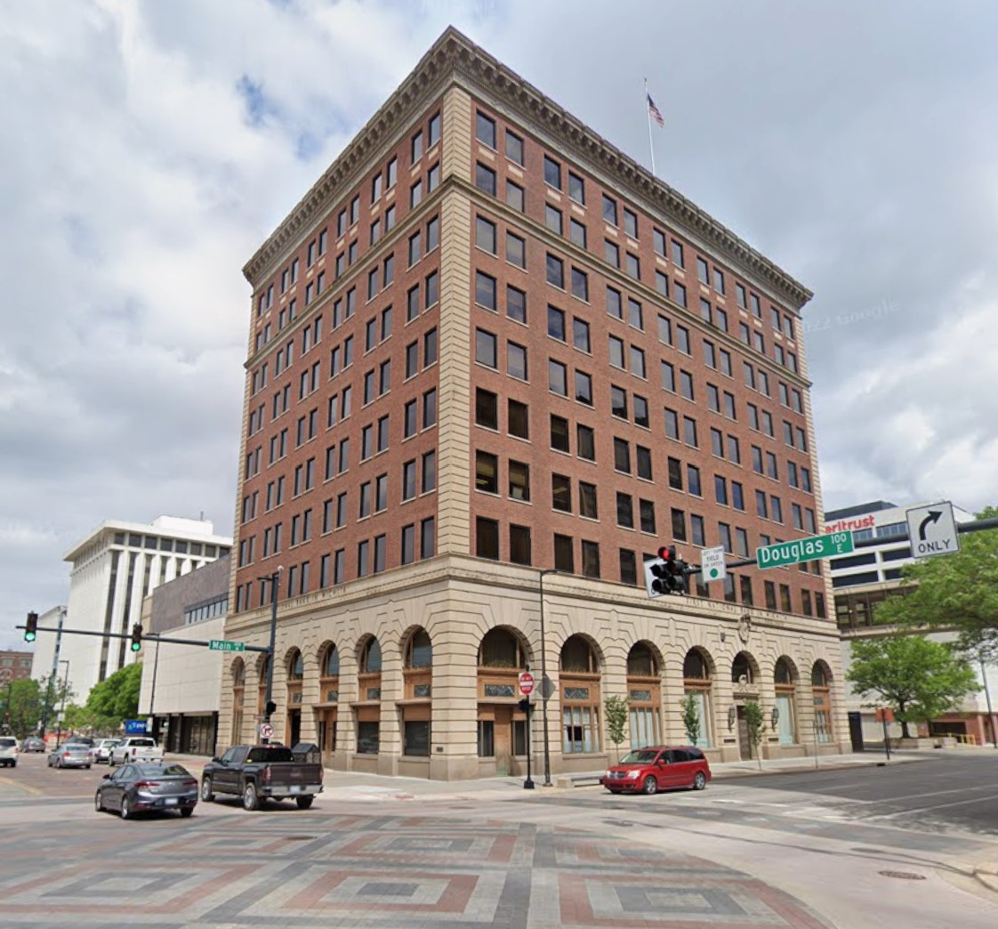 The old First National Bank building on the corner of Douglas and Main Streets ca2021 Wichita, KS Ch2782