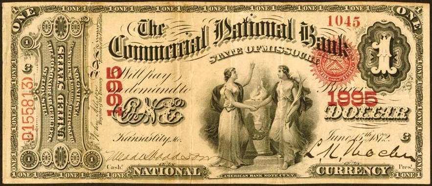 Original Series $1 Kansas City, MO Ch1995 Meade S. Woodson, Cashier and L.K. Thacher, President
