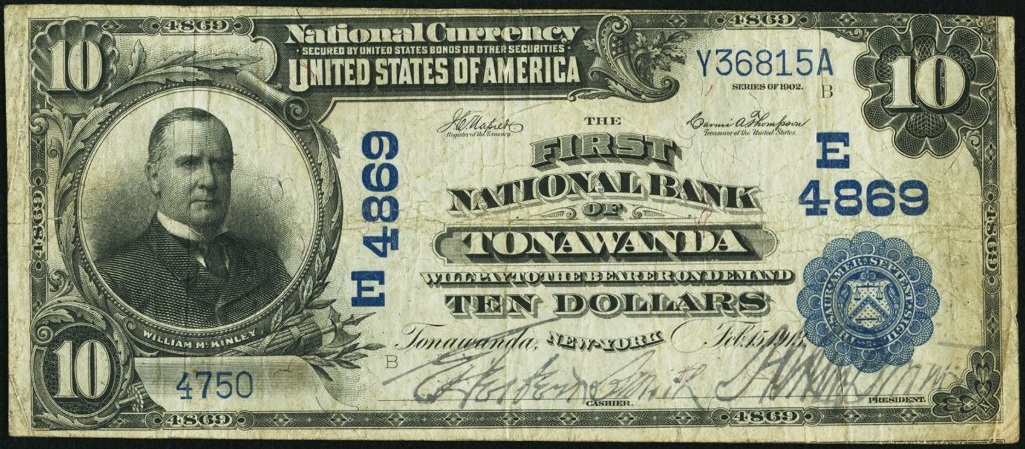 1902 Date Back $10 Tonawanda, NY Ch4869 E. Herbert Smith, Cashier and Henry P. Smith, President