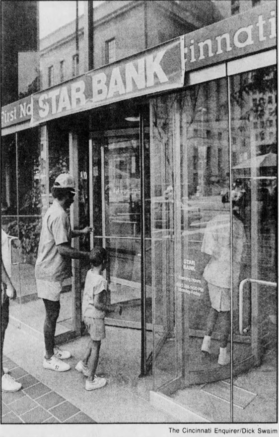 Customers enter the Fifth Street office of Star Bank Cincinnati, OH Ch24 1988
