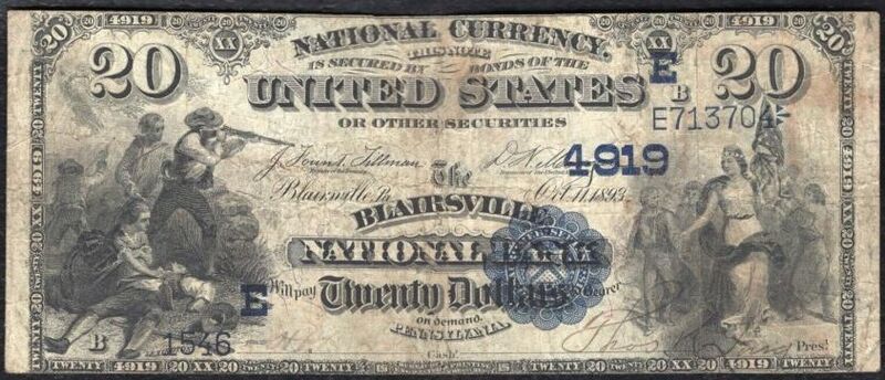 1882 Date Back $20 Blairsville, PA Thomas H. Long, President