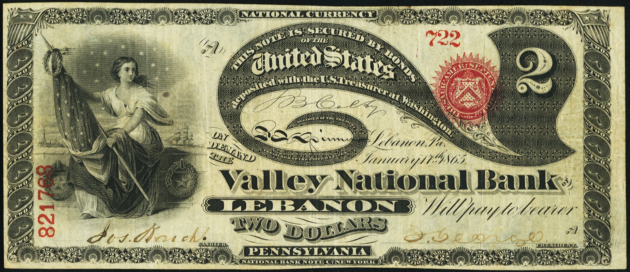 Original series $2 Lebanon, PA Ch655 Joseph Karch, Cashier and John George, President