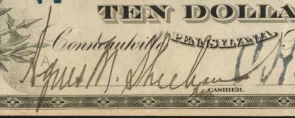 | PA | Catawissa | 7448 | Vastine, Nelle P. | Nelle M. (Pfahler) Vastine (Cashier 1923-1924; Asst Cashier 1904...1922) | 1904 | Signature | Catawissa National Bank |