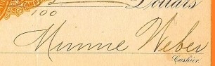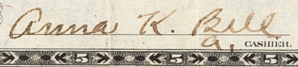 This page contains a listing of all of the women national bank note signers that are currently identified in the SPMC Banks & Bankers Database. This list includes all women who served as National Bank Presidents or Cashiers (1863-1935), and also includes women Vice-Presidents and Assistant Cashiers that are known to have signed national bank notes (that we have signature scans for, or are listed in Frank Clark's list of Women Bank Note Signers). A special thank you to Frank Clark and Karl Kabelac for their long-term research efforts and Paper Money articles related to women national bank officers.