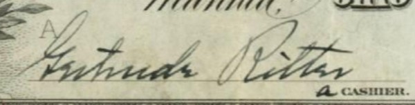| OH | Mantua | 5370 | Ritter, Gertrude | Gertrude Ritter (Asst Cashier 1921...1934) | 1921 | Signature | First National Bank |