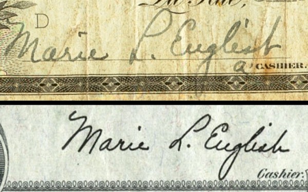 | OH | La Rue | 6675 | English, M. L. | Marie L. (Clifton) English (Cashier 1933-1935; Asst Cashier 1925...1932) | 1925 | Signature | Campbell National Bank |